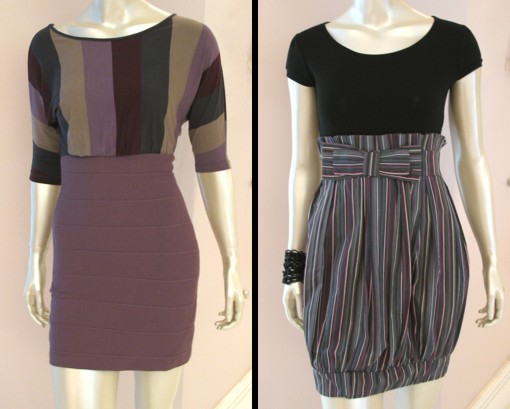 As saias de cintura alta como a bandagem e balonê dão o efeito de saia usada com uma blusa mas, acredite, a peça é uma só! Entre as novidades das araras Lugage no Preview outono/inverno estão os vestidos de cintura alta simulando duas peças. Mais prático impossível, né? E as listras, presentes nos dois vestidos, estarão em alta nesta temporada.